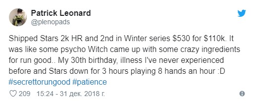 Патрик Леонард в новогоднюю ночь попал в призы турниров PokerStars
