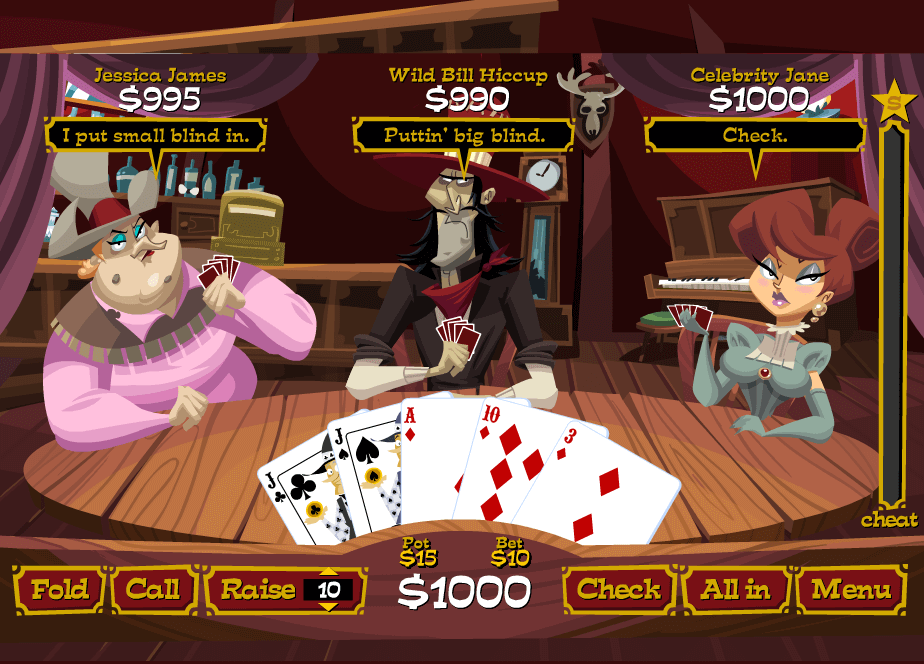 Good Ol`Poker увлекательная флешка предусматривающая состязания в оффлайне. Игрок переносится на Дикий Запад. В местных тавернах предстоит играть в покер бесплатно в формате Дро. В рамках каждого круга отыгрывается по 15 раздач.