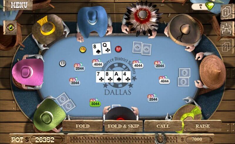 Красочное приложение Governor of Poker переносит покеристов в Техас – предстоит посетить десятки городов и салунов. В каждой локации определенные миссии. Только выполнив все задания успешно, можно отправляться в следующий штат.