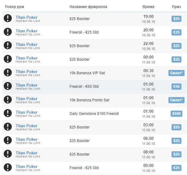 TitanPoker – крупнейший онлайн-рум сети iPoker. Он славится своим слабым полем и многочисленными акциями для игроков. Каждый месяц рум выделяет более 60 000 евро на проведение фрироллов. При этом 10 000 евро идет на организацию бесплатных состязаний для новых клиентов.