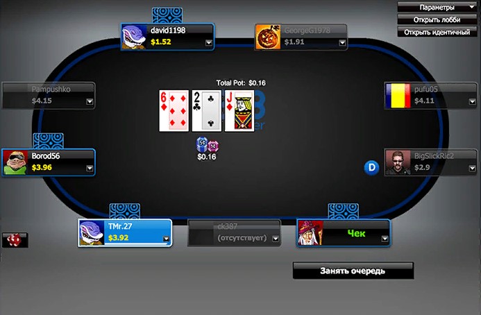 - большой трафик – одновременно в комнате отыгрывают раздачи около 3000-4000 покеристов, что позволяет в любое время находить соперников в соответствии со своим уровнем мастерства;