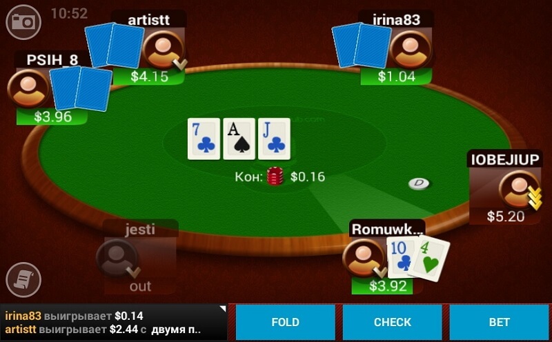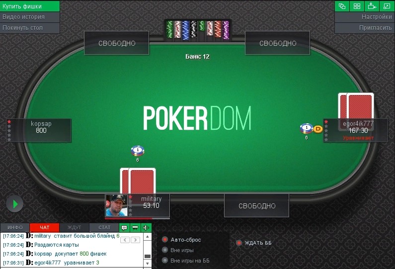 Другая особенность этой онлайн-комнаты заключается в том, что здесь игра ведется на невысоких лимитах: