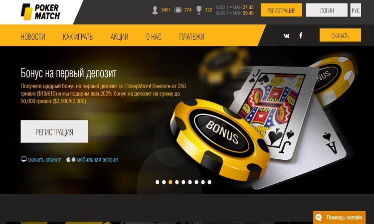 Покер-рум создал комфортные и выгодные условия для игроков, в числе которых: