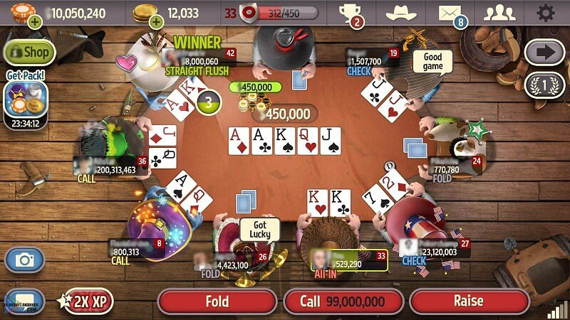Zynga Poker — другое популярное покерное приложение. В нем вы сможете отыгрывать раздачи по Техасскому Холдему вместе со своими друзьями и другими пользователями. Также можно будет принимать участие в турнирах. Более того, вы сами сможете организовывать состязания и высылать приглашения отдельным игрокам.