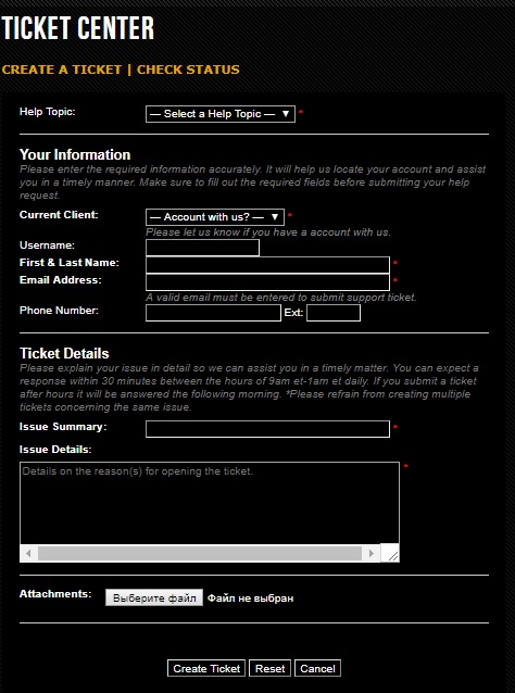 Саппорт рума доступен посредством двух способов – форма обратной связи и онлайн-чат. Последний вариант является более предпочтительным, так как обеспечивает оперативную связь со специалистом саппорта. Но учтите, что задавать вопросы нужно на английском языке, на нем и предоставляются ответы. Что касается использования формы обратной связи, то она доступна на сайте и предполагает заполнение ряда полей: