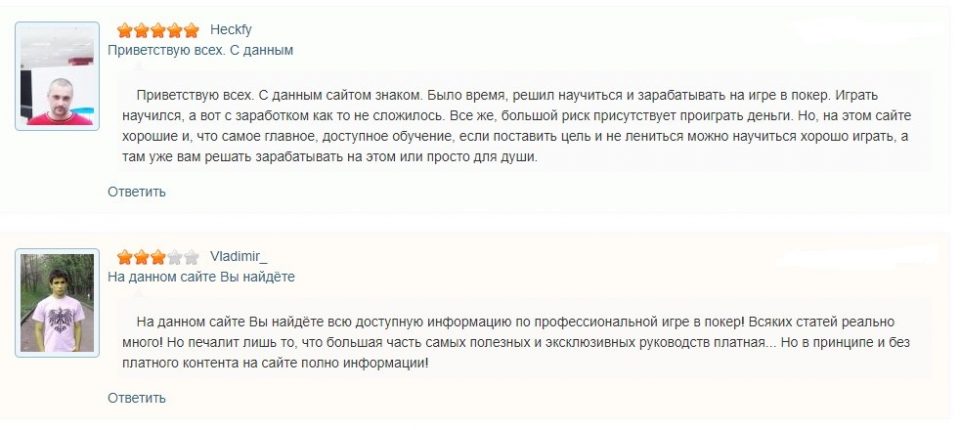 В сети вы без труда найдете отзывы о PokerStrategy. По большей части они положительные. Игроки относят к плюсам большое количество полезных материалов и видео, возможность участия в акциях и получения бонусов. Им нравится схема пошагового обучения, возможность просматривать ВОДы от профессиональных инструкторов.