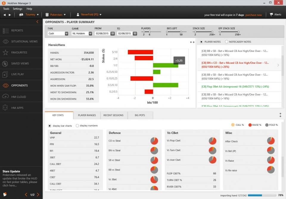 Holdem Manager 3 – эффективный инструмент для игры в покер на деньги. Благодаря ему можно не только повысить свой уровень мастерства за счет детального анализа отыгранных раздач, но и успешнее предугадывать действия своих соперников. За счет этого можно минимизировать финансовые риски и увеличить как размер своих выигрышей, так и их частоту.