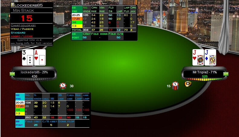 Софт снабжен широким функционалом. В первую очередь выделим инструмент HUD, который в режиме реального времени выводит данные по соперникам за столом. В окне отображаются следующие показатели по оппонентам: