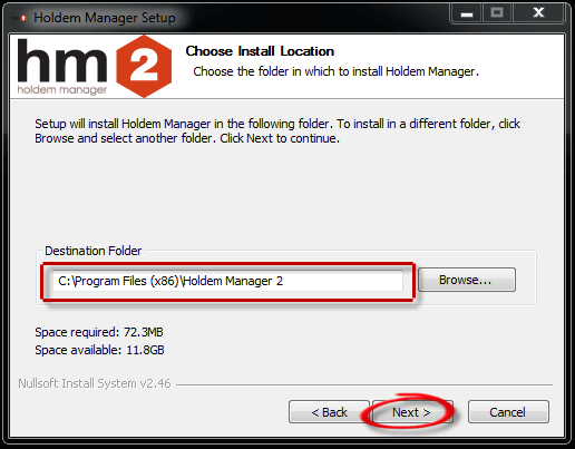 Теперь выберите папку на компьютере, в которую будет устанавливаться покерный софт. Вновь нажмите на кнопку «Next».