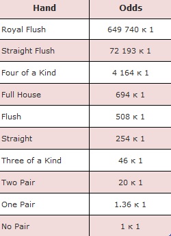 Таблицы шансов в покере