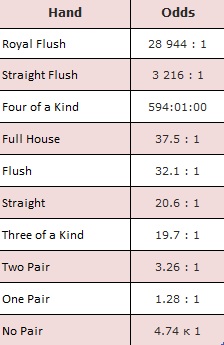 Шансы получить покерные расклады на 5 картах: