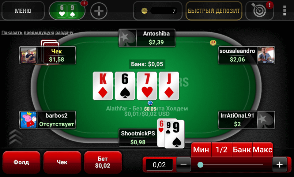 - Количество соперников. Идеально прием срабатывает при игре против одного оппонента. Большее количество участников в раздаче – главное препятствие для успешного проведения флоатинга. Трудно предположить, сделают ли участники игры фолд на крупное повышение с вашей стороны.