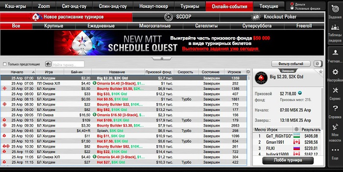 - Дисциплина. События проходят по Омахе, Холдему, Раззу, Стаду, Бадуги, ХОРСЕ, Американе. Выбирайте разновидность покера, в которой добились успеха за кеш-столами.
