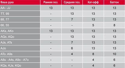Если вы делали малый блайнд и соперники ставили, используйте эту таблицу: