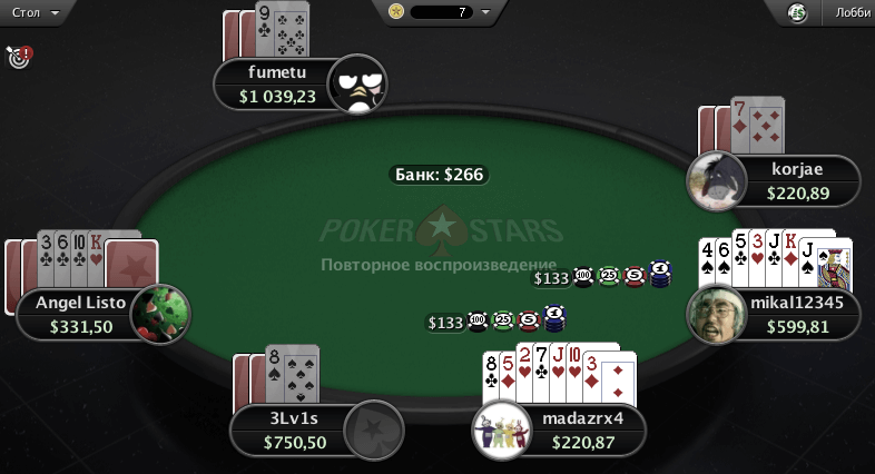 В онлайн покере карты вскрываются автоматически – сразу после уравнивания самой высокой ставки.