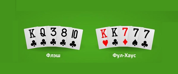 Но что выше – Фул Хаус или Флеш? Здесь нужно опираться на вероятности получения каждой из этих комбинаций. Для первого сочетания она составляет 694 к 1, а для второго – 509 к 1. Поскольку получить Фулл Хаус сложнее, то он всегда старше Флеша.