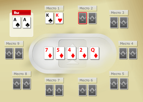 Однако в раздаче может случиться и так, что у одного из соперников будет дополнительная карманная карта для получения более старшего Флеша. Тогда именно ему будет причитаться весь пот. Если именно у вас оказалась фигура подходящей масти и старшего номинала, то тогда выбирайте агрессивную тактику розыгрыша такой руки.
