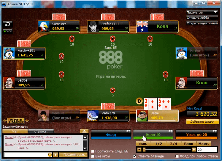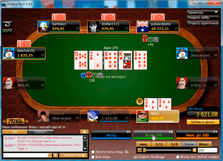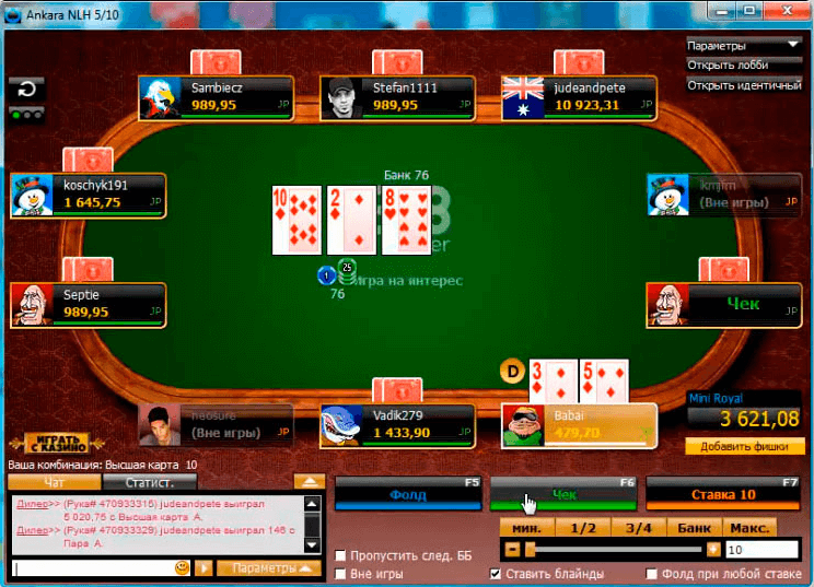 А значит, нужно стремиться собирать менее сильные сочетания. Фулл Хаус, Флеш и Стрит открывают хорошие перспективы для выигрыша пота. Более того, даже с Парой можно забрать банк.