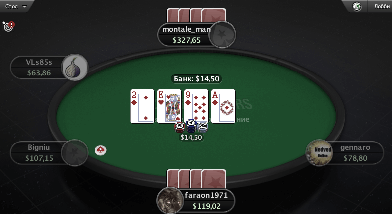 Выбрав подходящий стол, вы автоматически станете участников раздачи. Сначала двое игроков, занимающих позиции малый и большой блайнды, делают обязательные ставки. Они необходимы для формирования начального пота, чтобы игрокам было за что сражаться в раздаче. Затем партия протекает в несколько этапов – префлоп, флоп, терн и ривер.