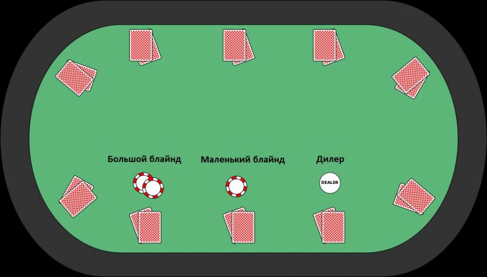 Правила покера Омаха предполагают начало игры с обязательных ставок – блайндов. Они совершаются еще перед раздачей карт. Такие ставки делают только два участника раздачи, которые располагаются слева от баттона (кнопки дилера). Первый покерист ставит малый блайнд, а второй – большой блайнд.