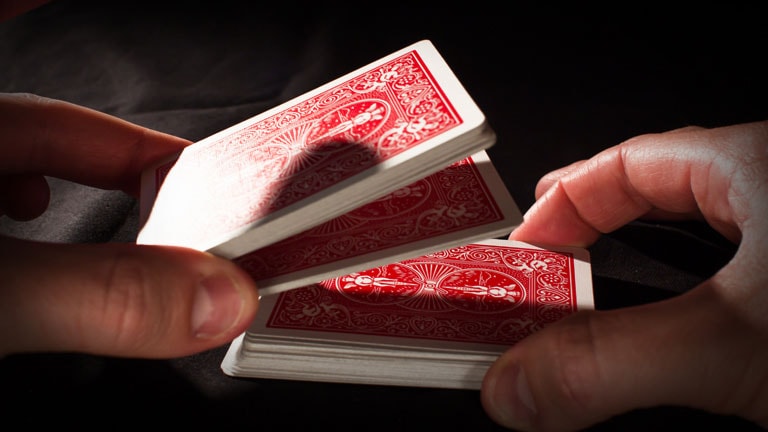 - Подрезка. Здесь происходит сдвиг части колоды и ее последующее перемещение вниз. Для удобства в ходе этого можно использовать жесткую ред-карту. Важно подрезать колоду не менее на 1 / 4 ее части.