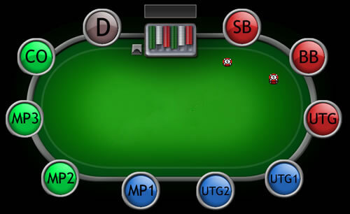 Чем больше участников находится за столом, тем реже вы будете делать блайнды. Вот почему в покерных комнатах наибольшей популярностью пользуются столы формата 9-max. Давайте рассмотрим сразу количество позиций за ними: