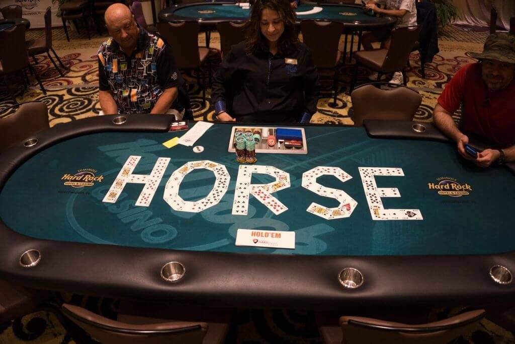 ХОРСЕ – это самая сложная разновидность покера. В нее играют только профессионалы, отлично разбирающиеся во всех 5 дисциплинах. В 2006 году по ней был впервые проведен турнир в рамках WSOP, вступительный взнос к которому составил 50 000 долларов.