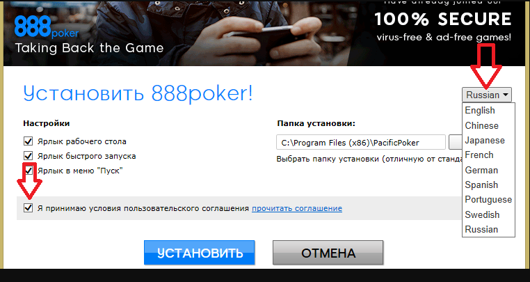 Скачать 888Poker клиент на компьютер можно с официального сайта покерной комнаты. Процесс загрузки и установки приложения не отличается сложностью. Представляем вашему вниманию пошаговое руководство: