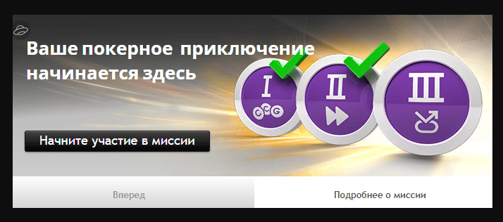 Данная онлайн-комната решила не ограничиваться бонусом. Также она подготовила для новых игроков специальную систему миссий. В рамках нее покеристу потребуется выполнить 7 несложных заданий.