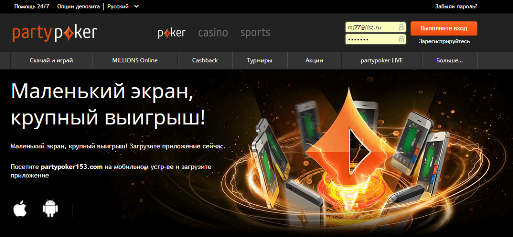 - Нажмите на кнопку «Скачать PartyPoker», которая находится в конце этой статьи.