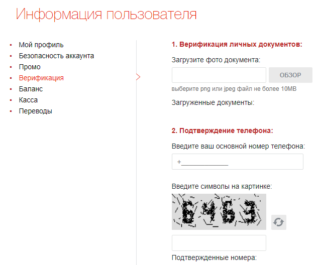 - В личном кабинете выберите раздел «Верификация», располагающийся справа.