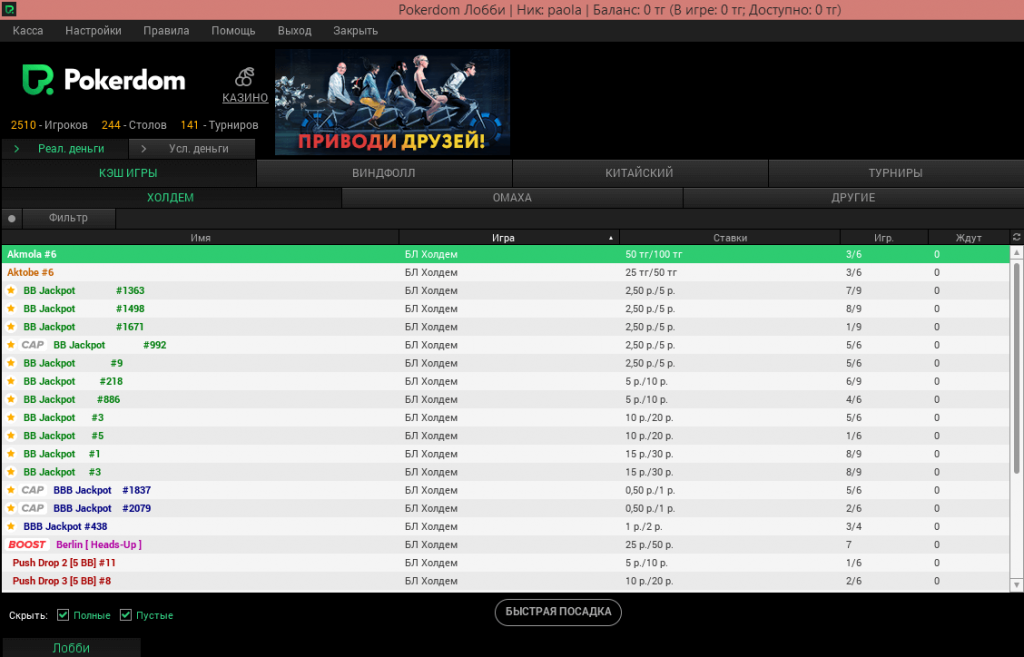 Что касается вариантов игры, то здесь ждут кеш-столы и турниры. При этом особой популярностью у игроков покер-рума пользуются: