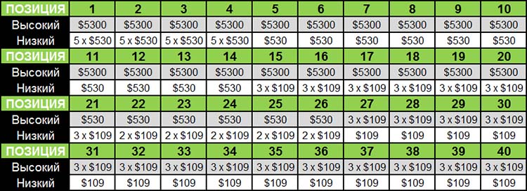В рамках акции каждую неделю будет формироваться по два лидерборда. Они будут различаться по уровню вступительных взносов – низкие (от $1 до $22) и высокие ($55+). ТОП-40 лучших покеристов каждого рейтинга получат следующие призы: